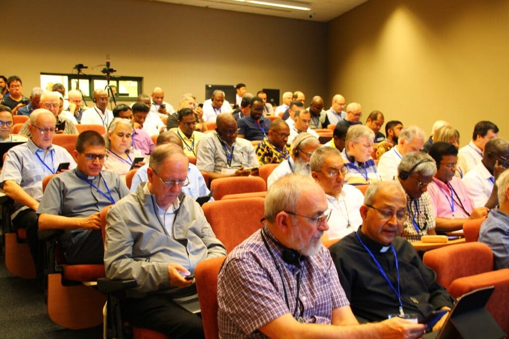 O Padre Mathew Vattamattam, Superior Geral, discutiu “Rumo a uma Espiritualidade Missionária Claretiana Integral, um Chamado de Deus para o Nosso Tempo”. Ele enfatizou a importância de enraizar a espiritualidade claretiana em Cristo e destacou seu papel essencial na preparação para a missão. O Padre Mathew ressaltou a importância de Claret e do carisma claretiano, apontando que nossa jornada espiritual nos leva à plenitude de Deus. Além disso, ele abordou o processo de transformação espiritual, reconhecendo a presença de desafios e o risco de estagnação ao longo do caminho.