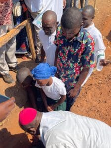 Antes da celebração, o prelato abençoou a pedra fundamental da futura Casa Paroquial.